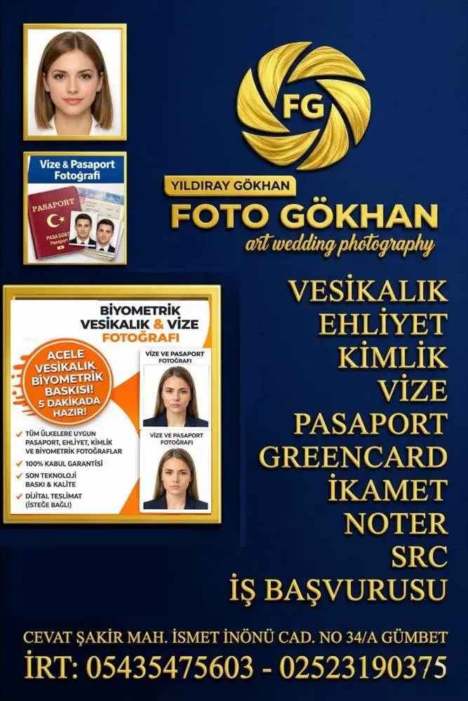 FOTO GÖKHAN GÜMBET 2006 YILINDAN İTİBAREN HİZMET VEREN : ACELE VESİKALIK,BİYOMETRİK FOTOĞRAF,HER ÜLKEYE UYGUN VİZE FOTOĞRAFI,FOTOĞRAF BASKISI,GELİN DAMAT ÇEKİMİ,VİDEO DRON ÇEKİMİ,TURİZM OTEL FOTOĞRAFÇILIĞI,ETKİNLİK ÇEKİMİ HİZMETİ VEREN GÜMBET İN YERLİ VE UZN YILLAR HİZMET VEREN FOTOĞRAF STÜDYOSUDUR.....